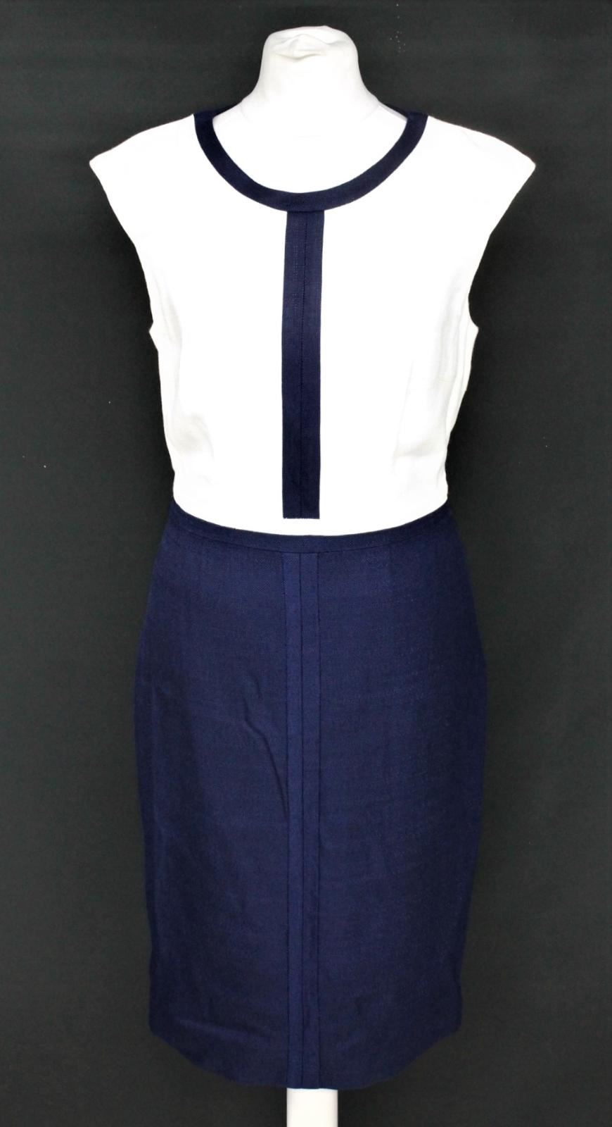 HOBBS Ladies Ivory Fr Blue Knee Length Sleeveless Sorcha Dress UK8 RRP149 NEW