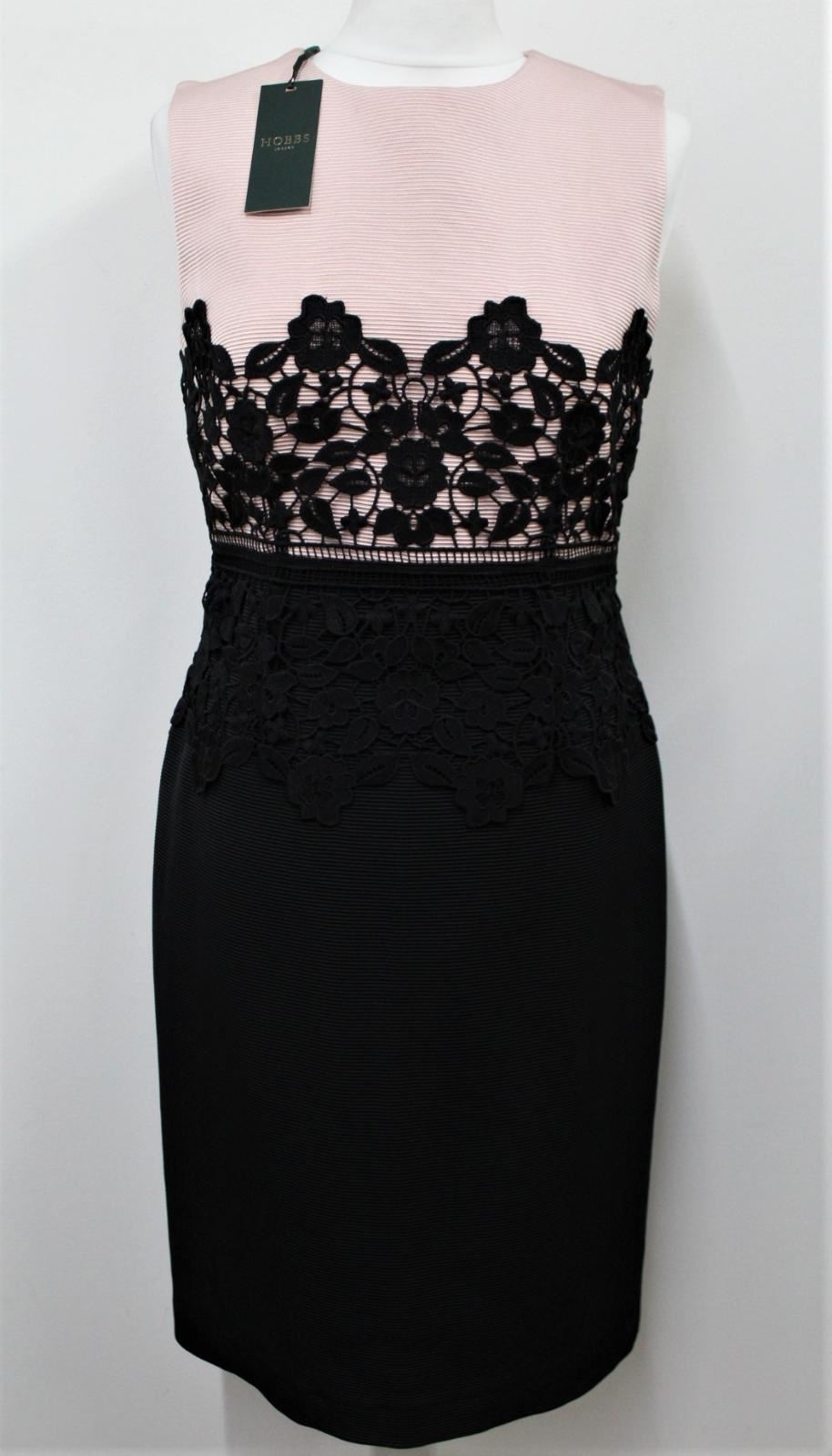 HOBBS Ladies Pink Black Floral Lace Trim Seraphina Shift Dress UK10 NEW RRP249